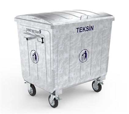 Teksin 1100 l Yarı Kubbe Kapaklı Sıcak Daldırma Galvanizli Çöp Konteyneri